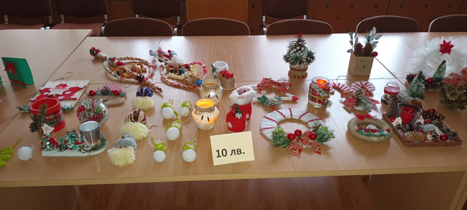 Изработка на Коледна украса с подръчни материали. Предлагането им на Благотворителен коледен базар, със събраните средства от който са закупени стоки по предварително съставен списък за текущите материални нужди на Фондация „Надежда за малките“, полагаща грижи за деца, лишени от родителски грижи, на възраст от 0 до 4 години.