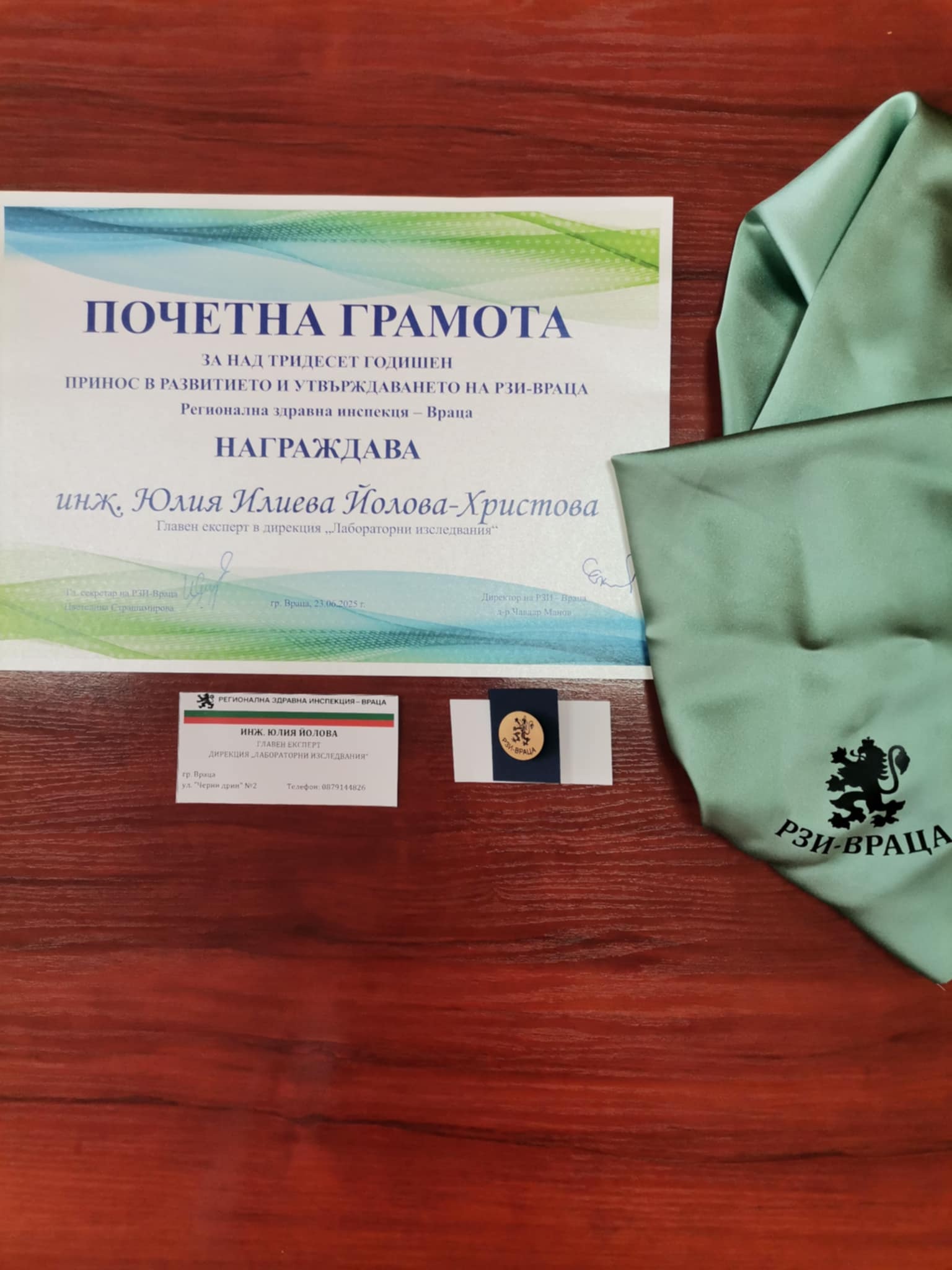 Хората са най-ценният и значим капитал на РЗИ – Враца и грижата за хората винаги е в началото на всички процеси и дейности по управление на човешките ресурси. Водени от желанието да ценим и повишим самочувствието и гордостта на служители си, през 2025 г. поставихме началото на мащабен проект - за изработка и последващо използване на символи за принадлежност от служителите на РЗИ-Враца. За целта се взе обосновано управленско решение от страна на ръководството на здравната инспекция, да се изработят шалчета, значки, визитки и почетни грамоти за служителите, чрез които да повлияем положително на организационната среда и да повишим авторитета и имиджа, както на служителите, така и на институцията.
